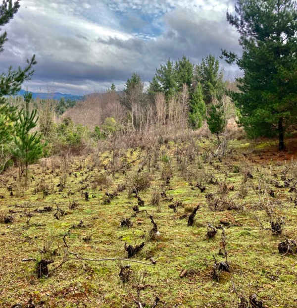 La Viña 77 es el nombre que figura en los registros de inscripción de estos viñedos en la Región del BioBío y que da cuenta de su antigüedad. Se encuentra en el sector El Venado, en las cercanías de Santa Juana, a 70 kilómetros de Concepción. Es un paisaje placentero, un tesoro escondido en medio de la actividad forestal imperante en la zona. Donde mires, los estímulos aparecen en miles de formas, colores y texturas en cada una de las estaciones del año. Un cerro de parras de la cepa país, forman una especie de pirámide, a unos dos kilómetros del Río Biobío. De fondo vemos robles, boldos, maitenes y quillay. Es un sublime bosque bordeado por un pequeño estero. La respiración se expande, se siente el aroma de los manzanos, ciruelos, membrillos y limoneros, la alegría de los perales, las higueras y de las murtillas que salen al encuentro. Se siente su energía del suelo… granítico, sedimentario y volcánico. Un suelo agreste, que aun en el más seco de los años, aguanta con vida y fragancia vides de más doscientos años. Esta es la “Tierra de Pumas”, desde donde nace el tinto País del mismo nombre, hogar de árboles y flores, que evocan los tiempos donde la vida silvestre era la única imperante y vigilada por el puma, el gran rey de Nahuelbuta.
